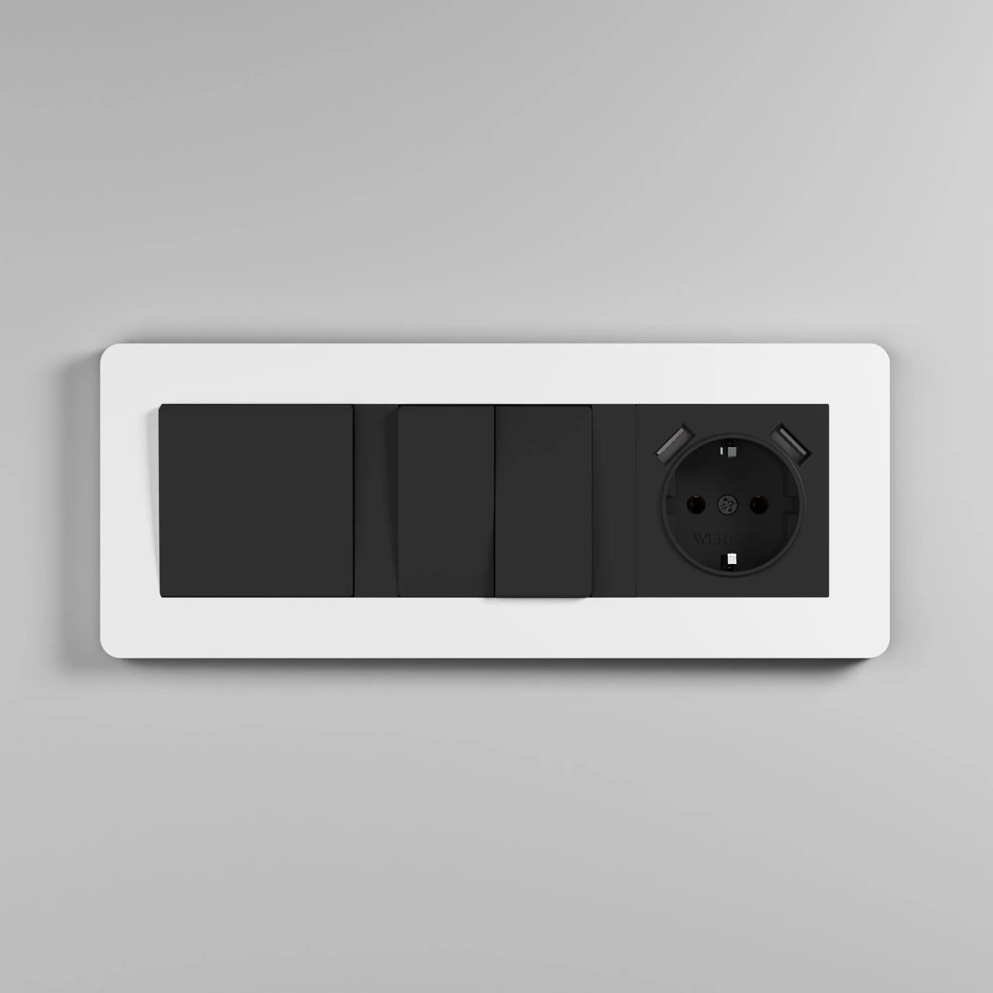 Трехпостовая рамка Split белый/чёрный от Werkel — стильный акцент с эффектом soft-touch для современного интерьера